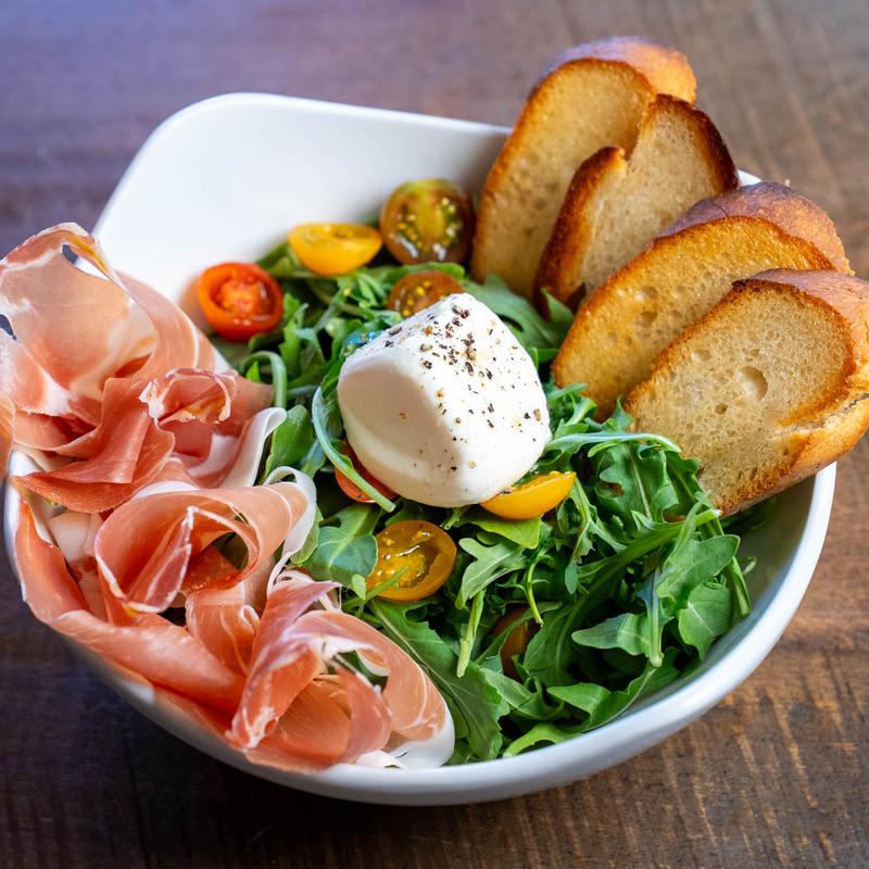 Arugula, sliced tomatoes, balsamic vinaigrette, prosciutto & toasted bread.